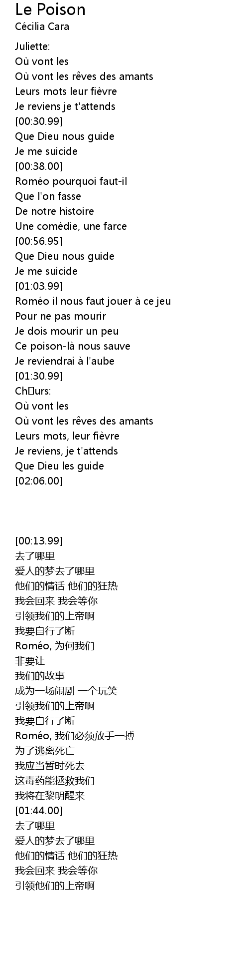 | [00:41.50] | Roméo pourquoi faut-il |