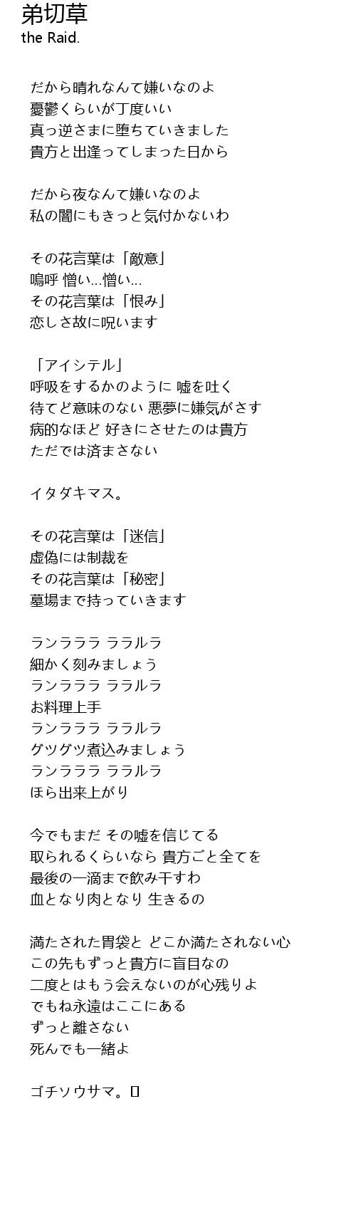 | その花言葉は「恨み」 | |