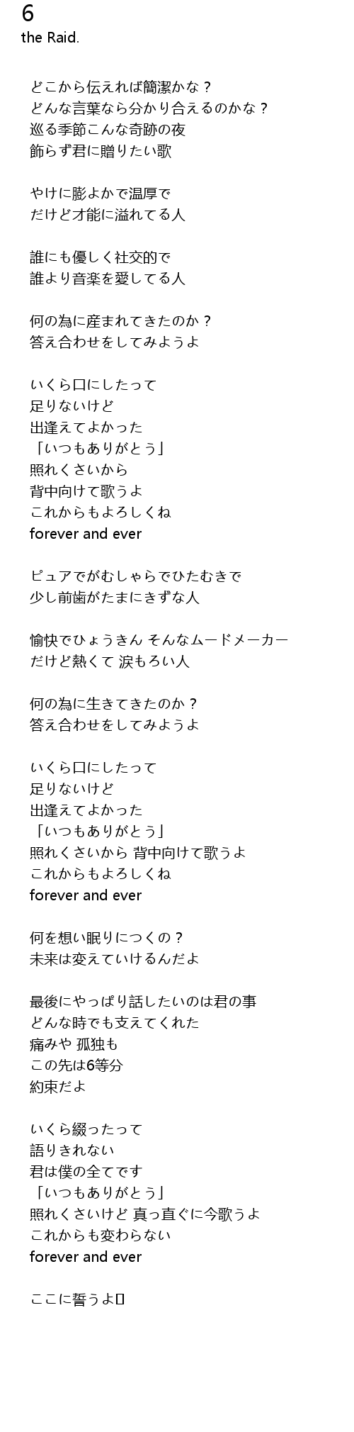 照れくさいけど 真っ直ぐに今歌うよ |
