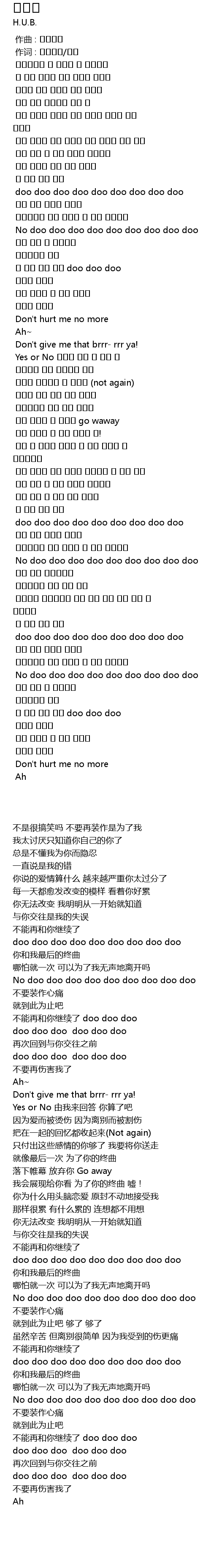 | [02:52.492] | 더 이상 너완 안돼 doo doo doo |