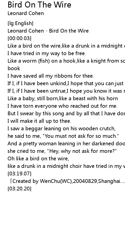 | [00:00.00] | Leonard Cohen Bird On the Wire |