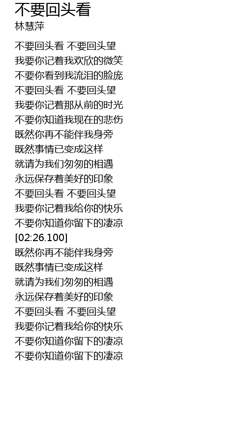 | [00:21.470] | 不要回头看 不要回头望 |