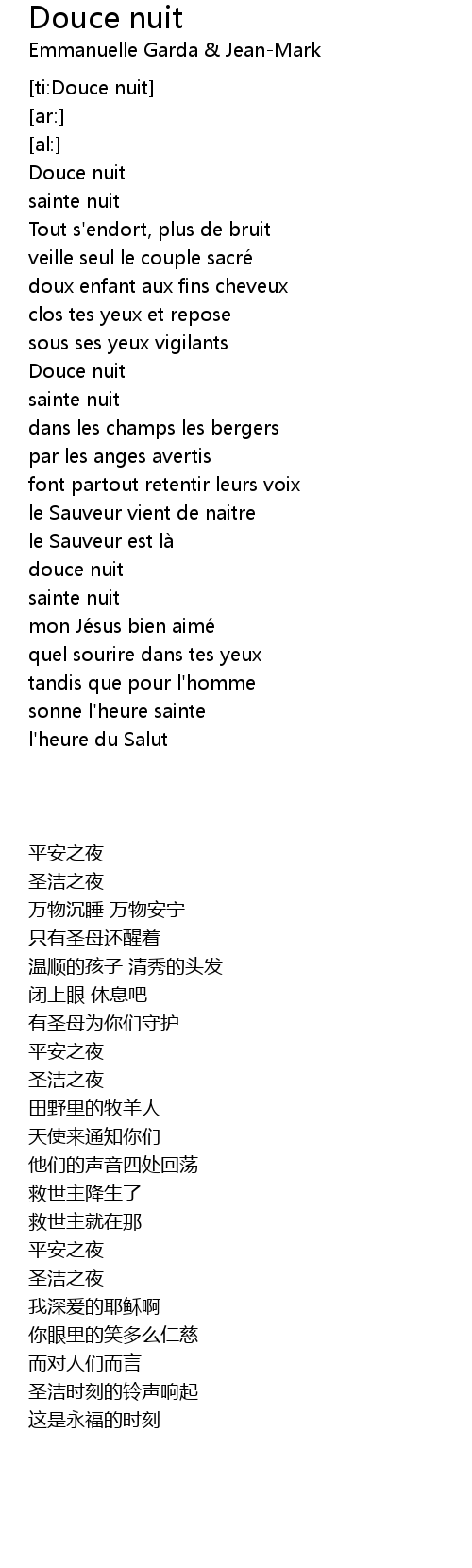 | [00:07.71] | Tout s' endort, plus de bruit |