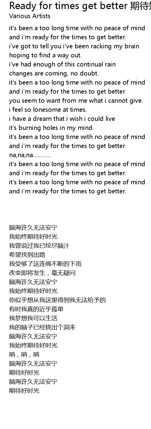 Ready for times get better qi dai hao shi guang gest always Lyrics