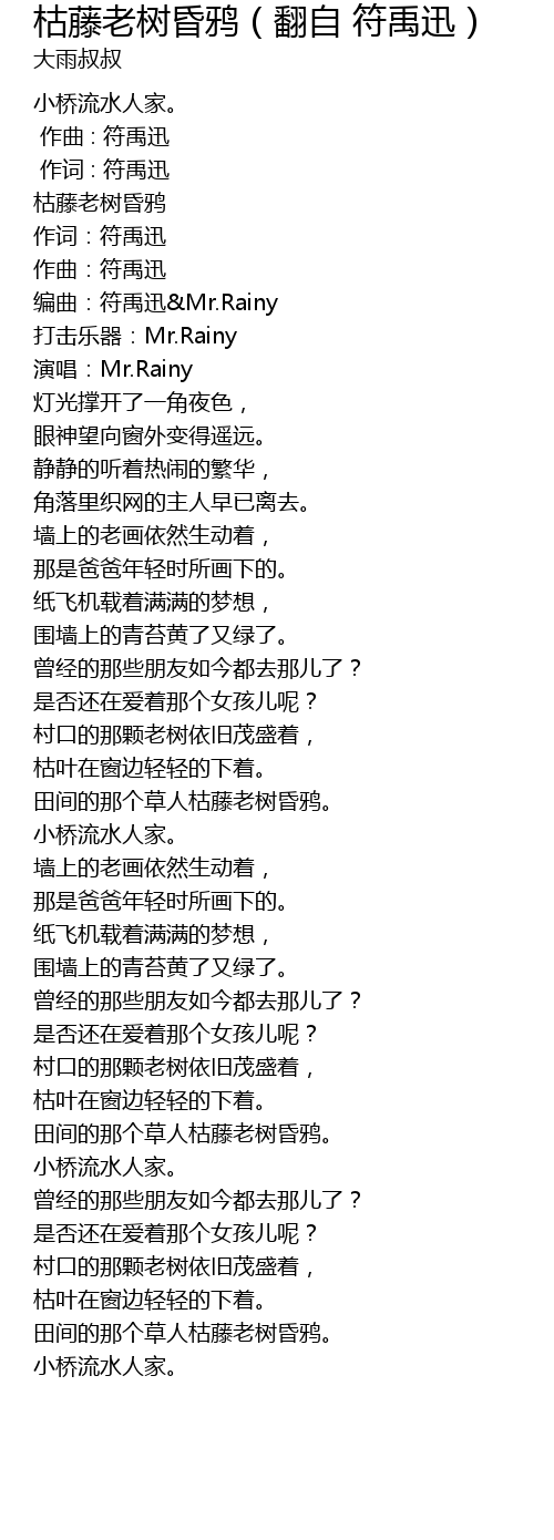 | [02:47.485] | 小桥流水人家。 |