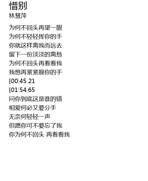 | [01:45.97][00:45.21] | 向你诉说你可不要走 |