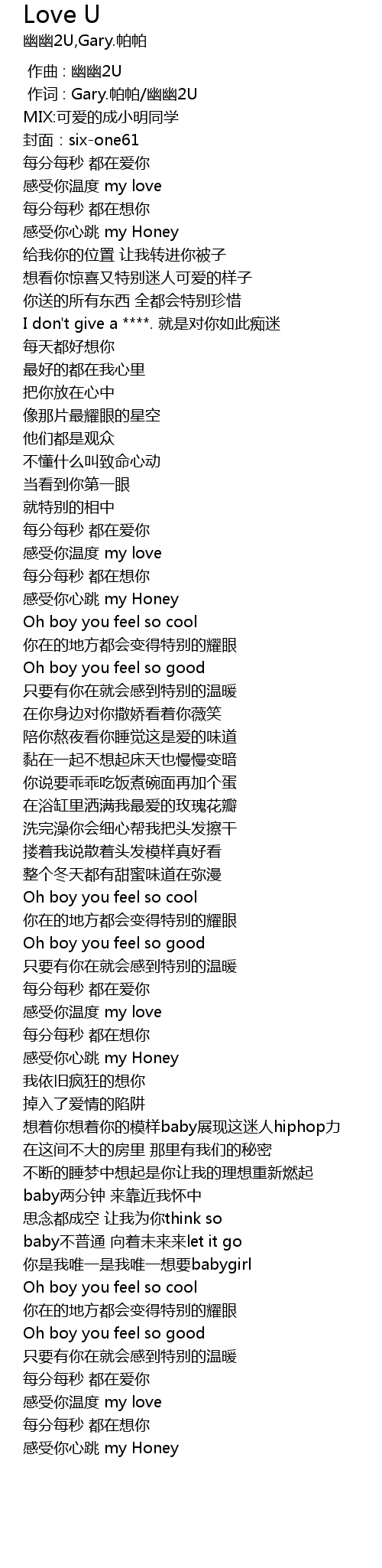 | [00:01.000] | 作词 : Gary.帕帕/幽幽2U |