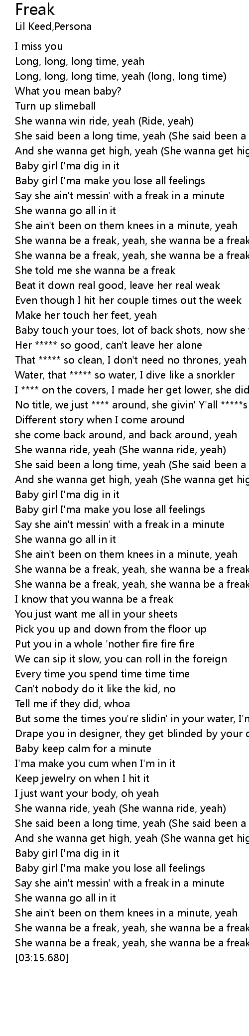 | [01:00.681] | She told me she wanna be a freak |