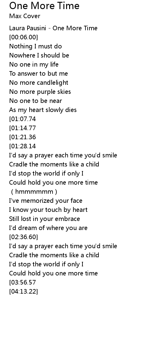 | [03:01.25][01:07.74] | If I could hold you one more time |
