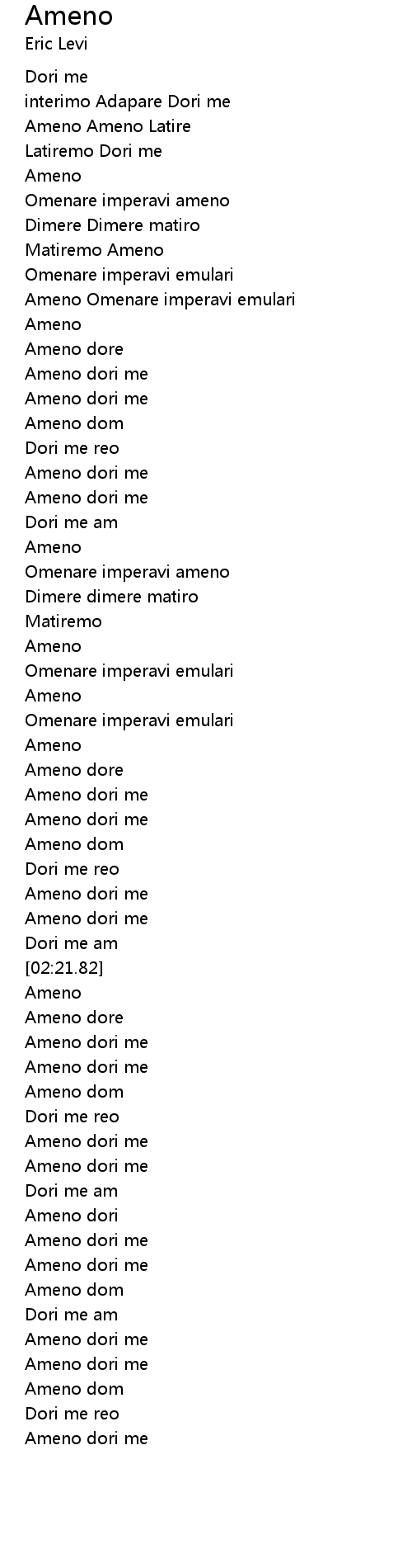 | [02:57.63] | Ameno |