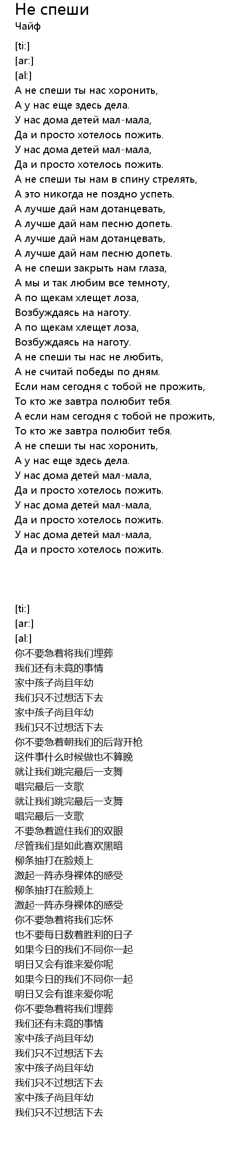 Не спеши  Lyrics