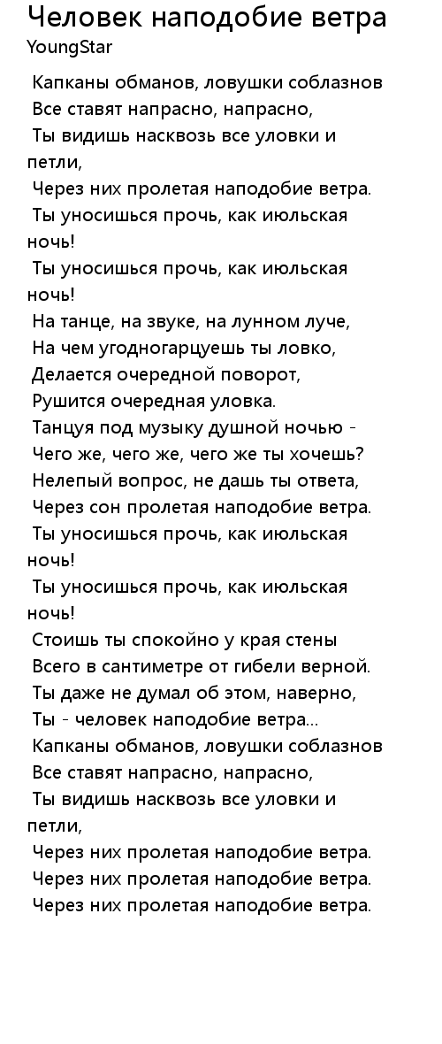 Ты - человек наподобие ветра... |