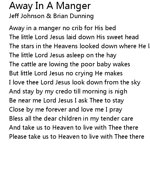 Away in a manger no crib for His bed |