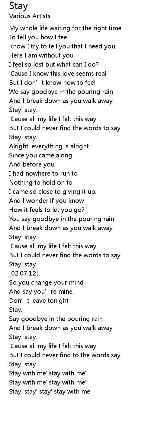 | [03:19.66] | Stay' stay' stay' stay with me |