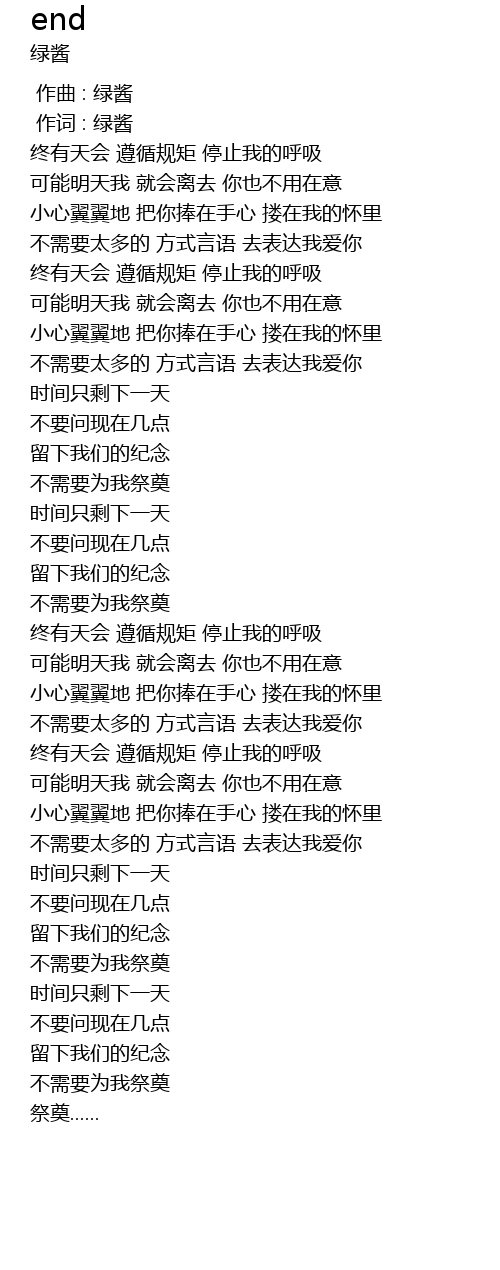 | [00:01.000] | 作词 : 绿酱 |