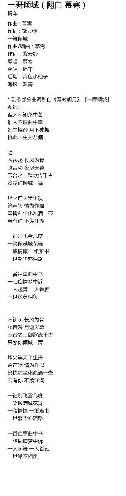 | * 副歌部分曲调引自《秦时明月》『一舞倾城』 | |
