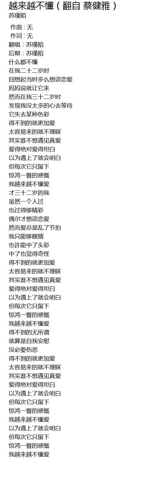 | [03:01.456] | 我越来越不懂爱 |