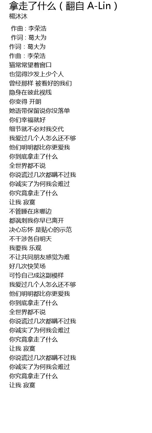 | [01:29.185] | nǐ dào dǐ ná zǒu le shén me |