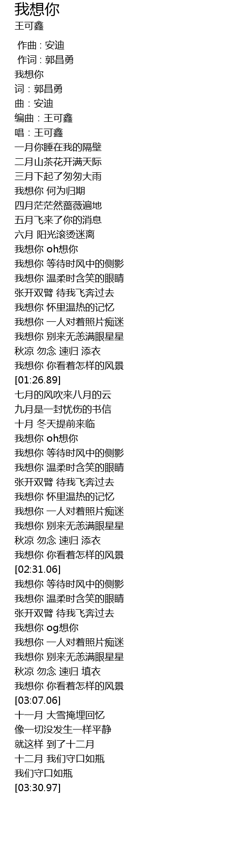 | [01:52.62] | 我想你 oh想你 |