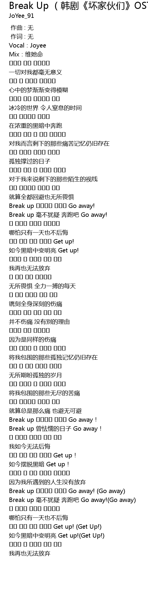 | [00:54.518] | Break up 毫不犹疑 奔跑吧 Go away! |