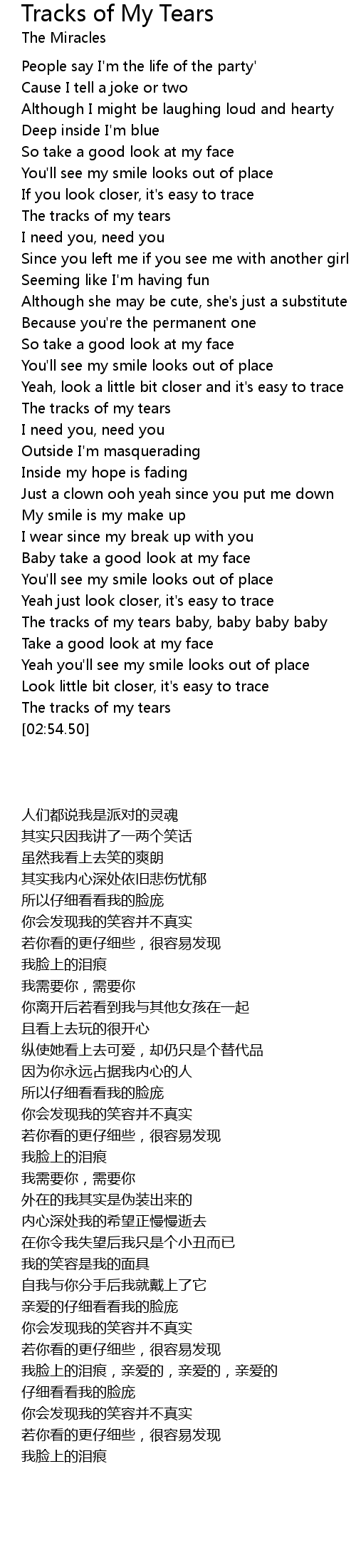 [02:31.68] The tracks of my tears baby, baby baby baby