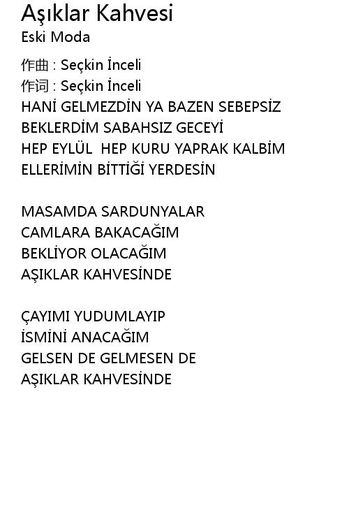 | 作词 : Seçkin İnceli | |