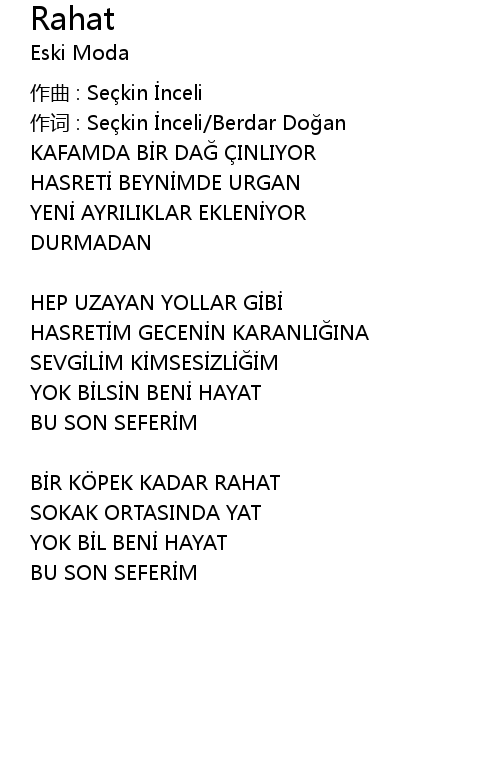 | 作词 : Seçkin İnceli/Berdar Doğan | |