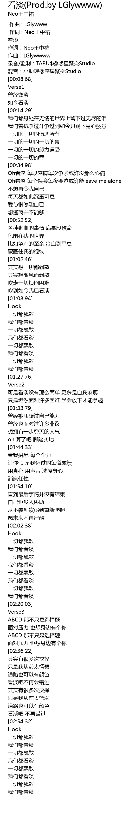 | [00:39.73] | Oh看淡 每个误会每夜哭泣或许能leave me alone |