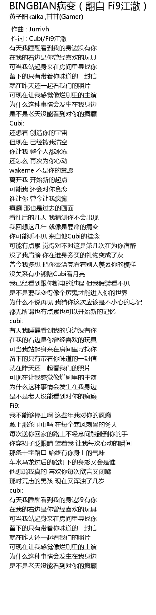 | [00:01.000] | 作词 : Cubi/Fi9江澈 |
