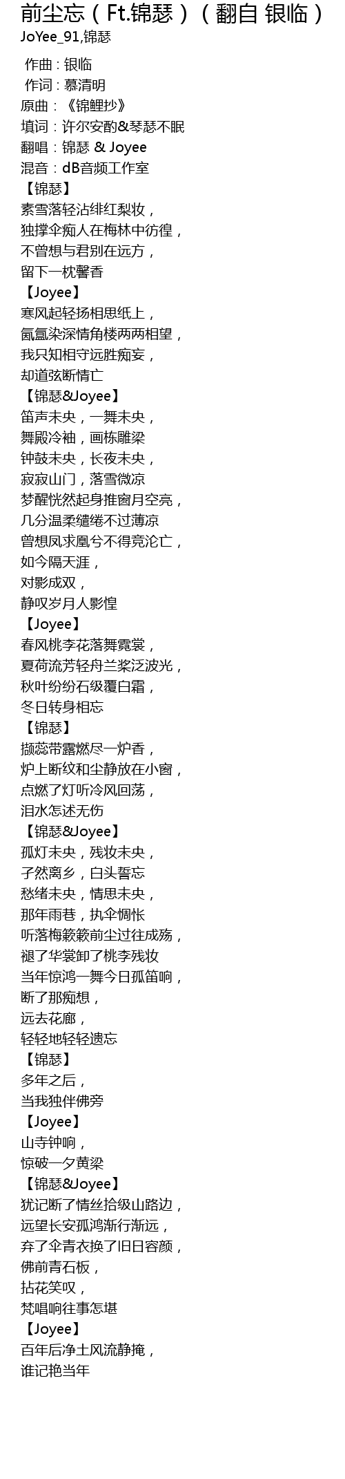 | [00:25.191] | 翻唱:锦瑟 & Joyee |
