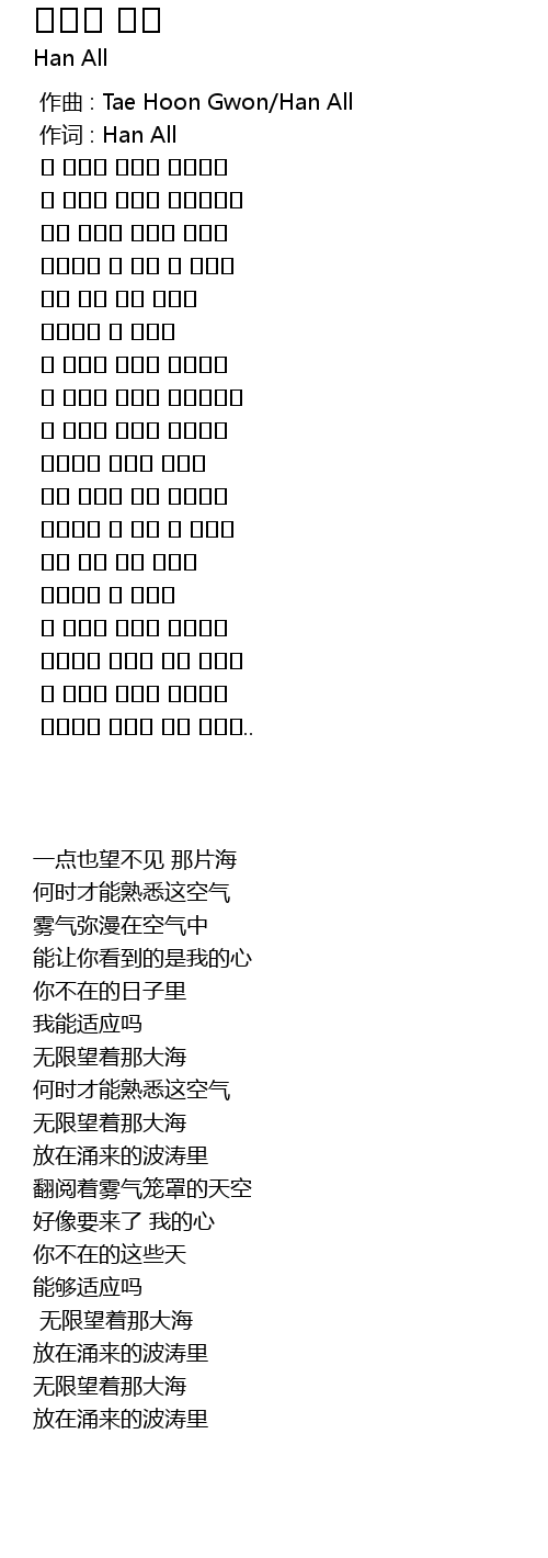 | [00:00.000] | zuo qu : Tae Hoon Gwon Han All |