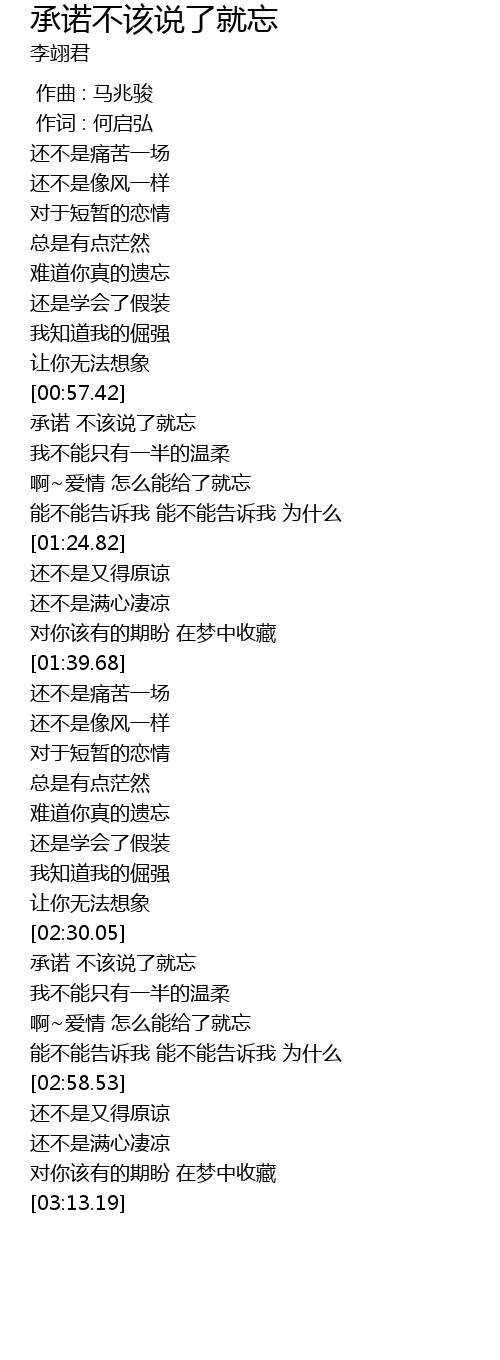 | [00:57.83] | 承诺 不该说了就忘 |