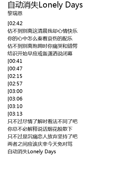 | [02:53] | zì dòng xiāo shī Lonely Days |