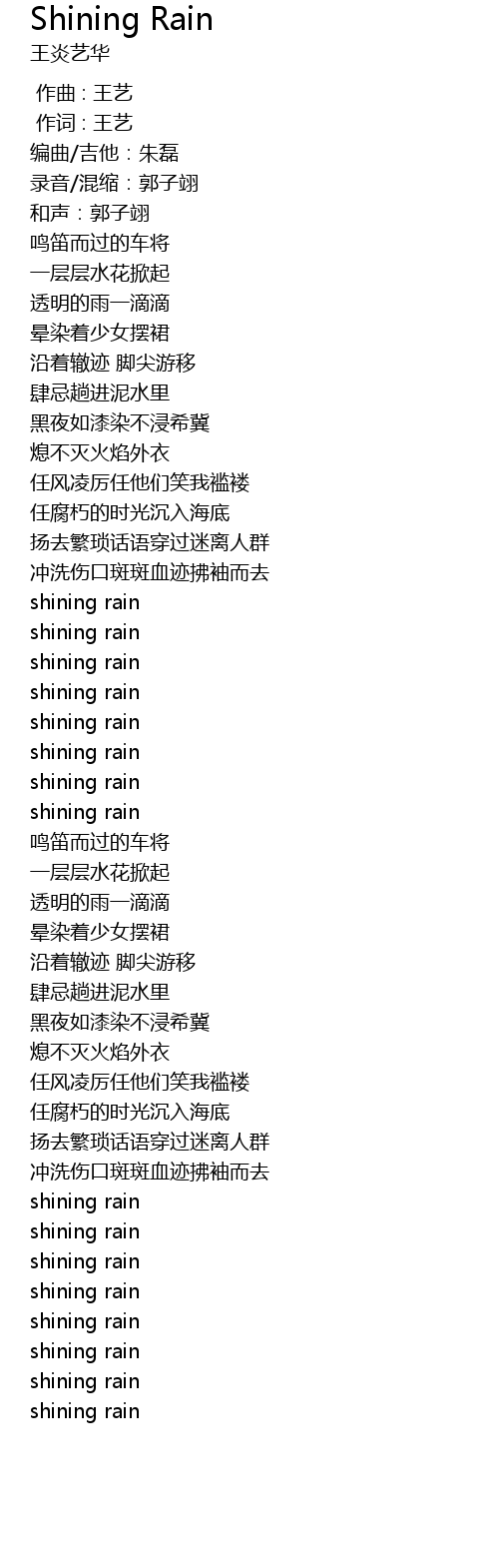 | [00:09.231] | 编曲/吉他:朱磊 |
