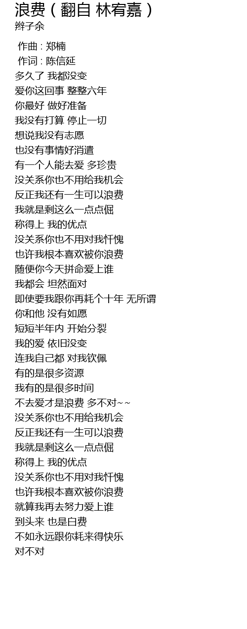 | [04:02.52] | 也许我根本喜欢被你浪费 |