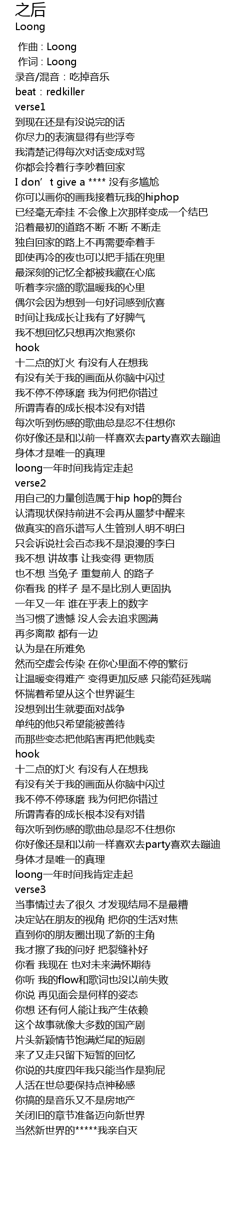 | [00:01.000] | 作词 : Loong |