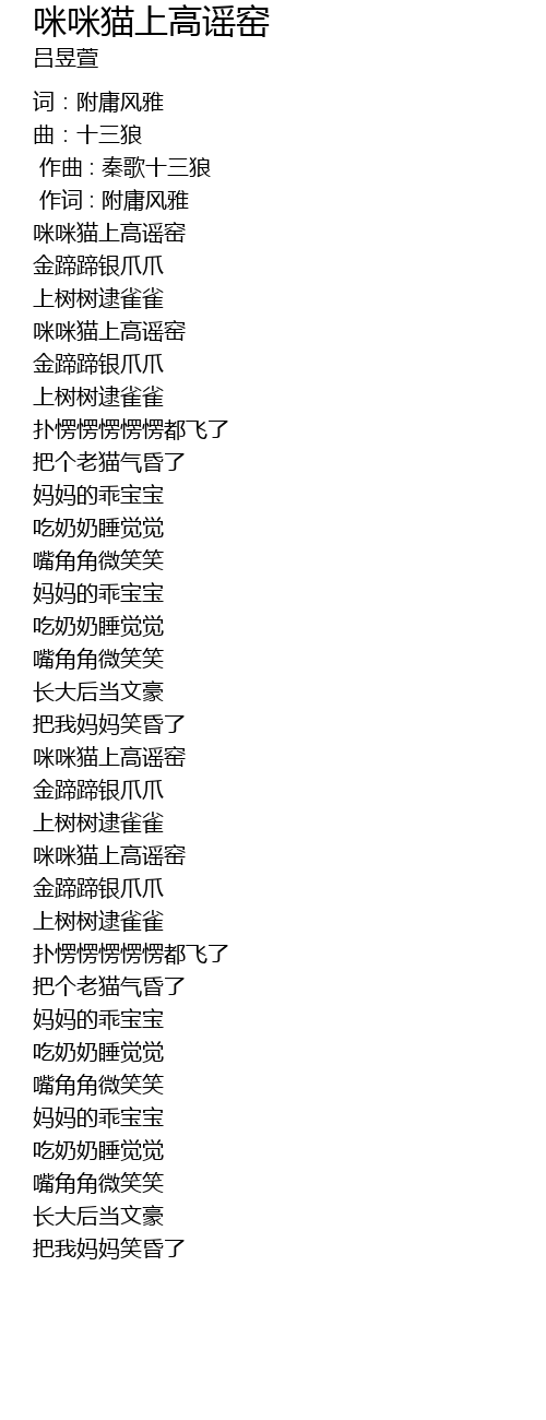 | [01:39.78] | 咪咪猫上高谣窑 |