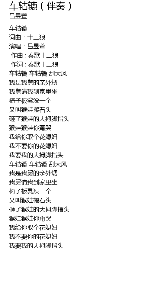 | [00:13.89] | 车轱辘 车轱辘 刮大风 |