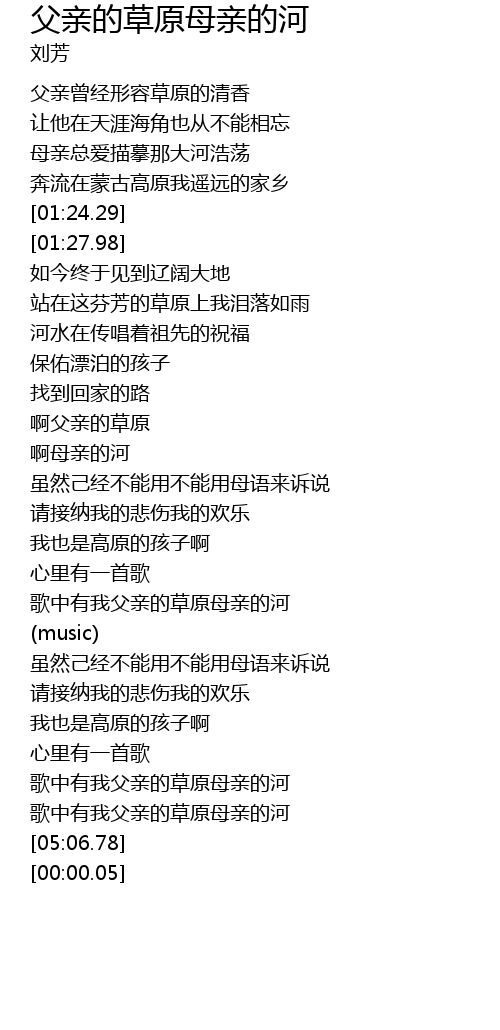 | [04:35.00] | 歌中有我父亲的草原母亲的河 |