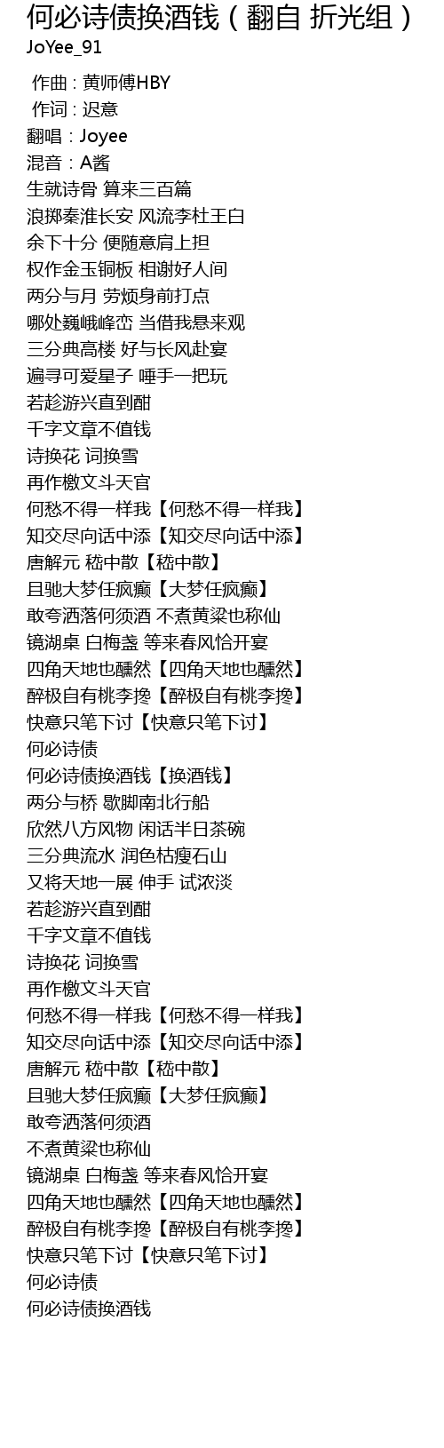 | [01:56.792] | 何必诗债换酒钱【换酒钱】 |
