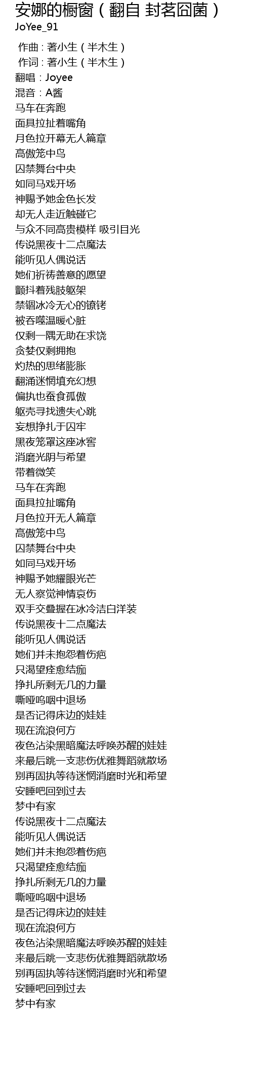 | [03:00.267] | 夜色沾染黑暗魔法呼唤苏醒的娃娃 |