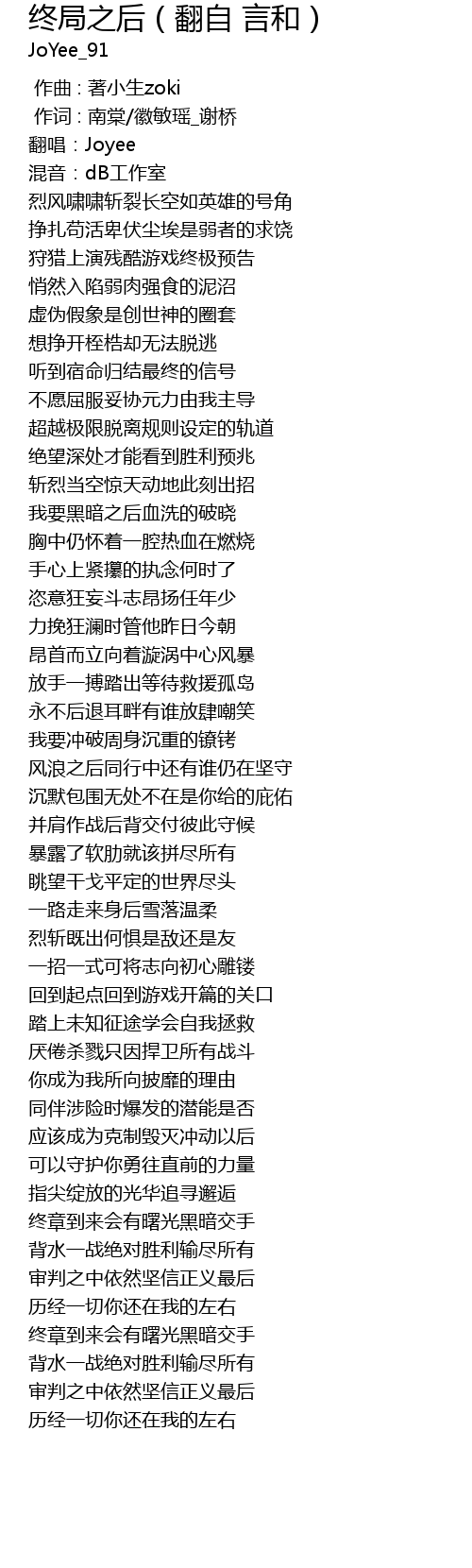 | [04:28.188] | 终章到来会有曙光黑暗交手 |