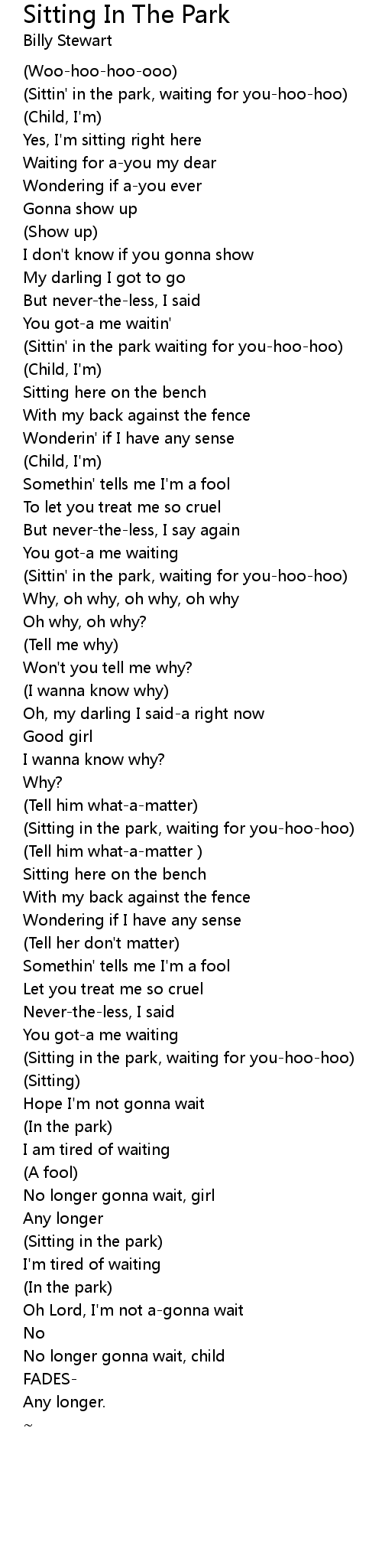 (Sitting in the park, waiting for you-hoo-hoo) |