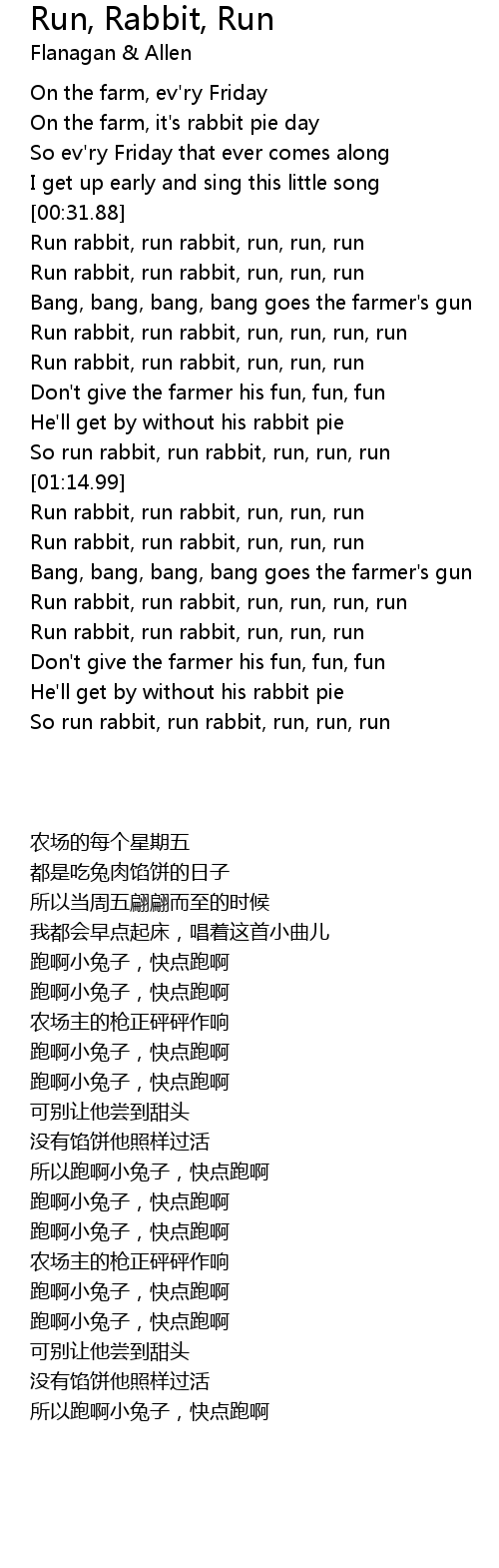 So run rabbit, run rabbit, run, run, run |