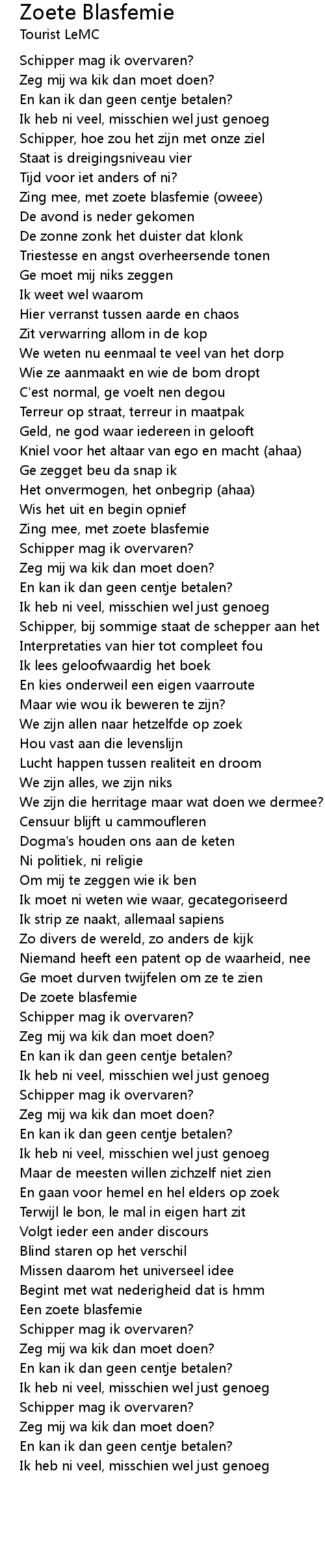 Zoete Blasfemie Lyrics