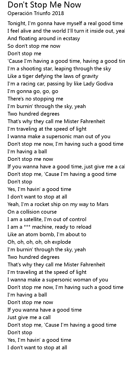 So don't stop me now |