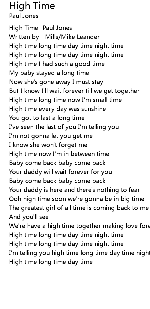 | [02:00.938] | I' m telling you high time long time day time night time |