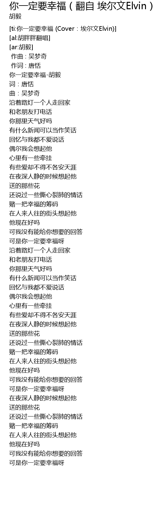| [ti:你一定要幸福 (Cover:埃尔文Elvin)] | |