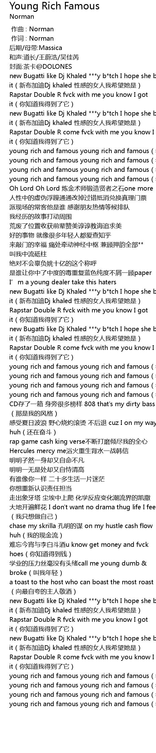 | [02:53.00] | young rich and famous young rich and famous nián qīng fù guì |