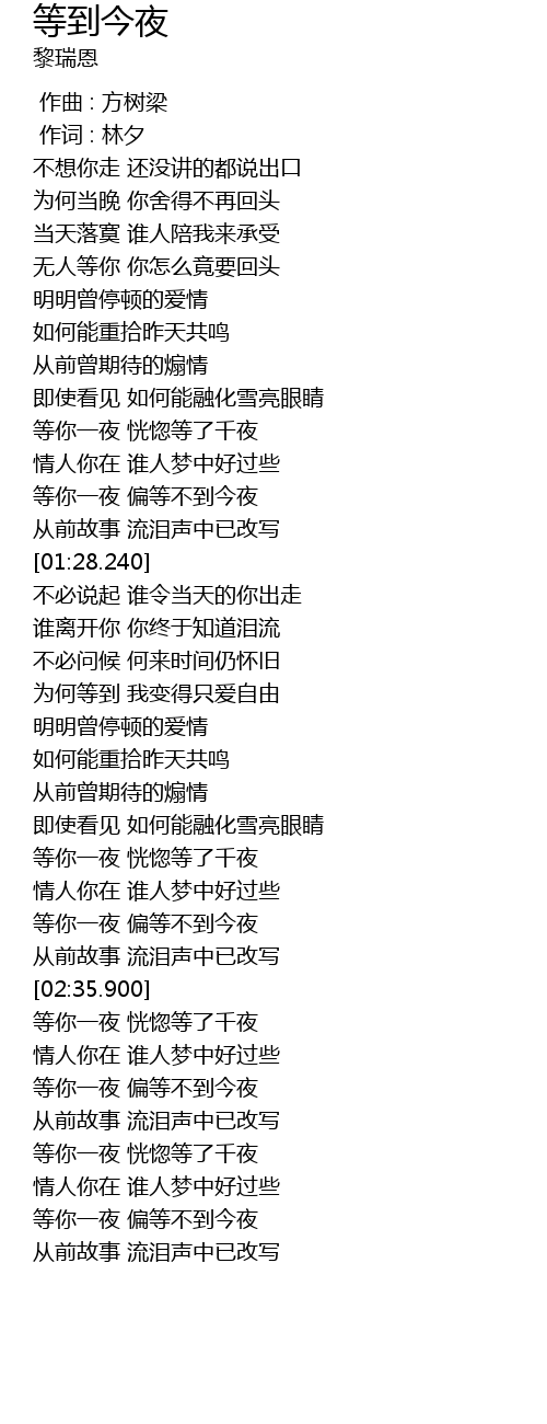| [03:23.250] | 等你一夜 偏等不到今夜 |